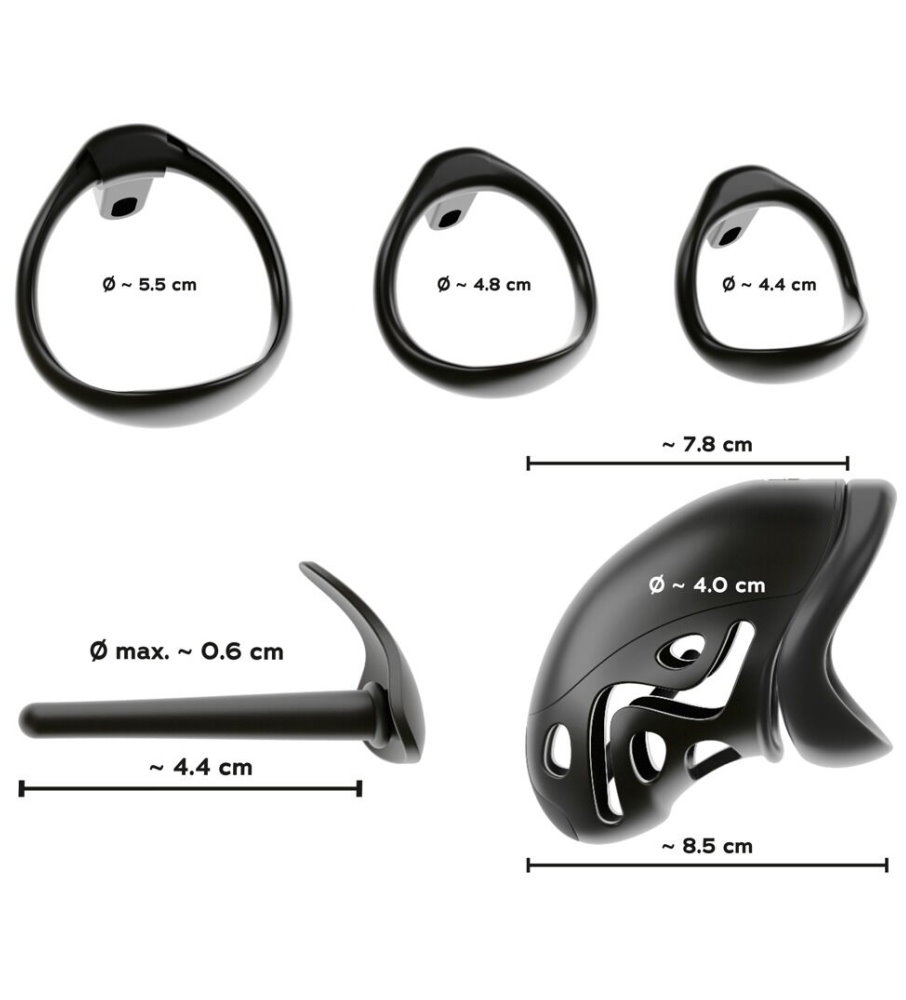 Cage de Chasteté Anatomique avec Dilatateur et 3 Anneaux